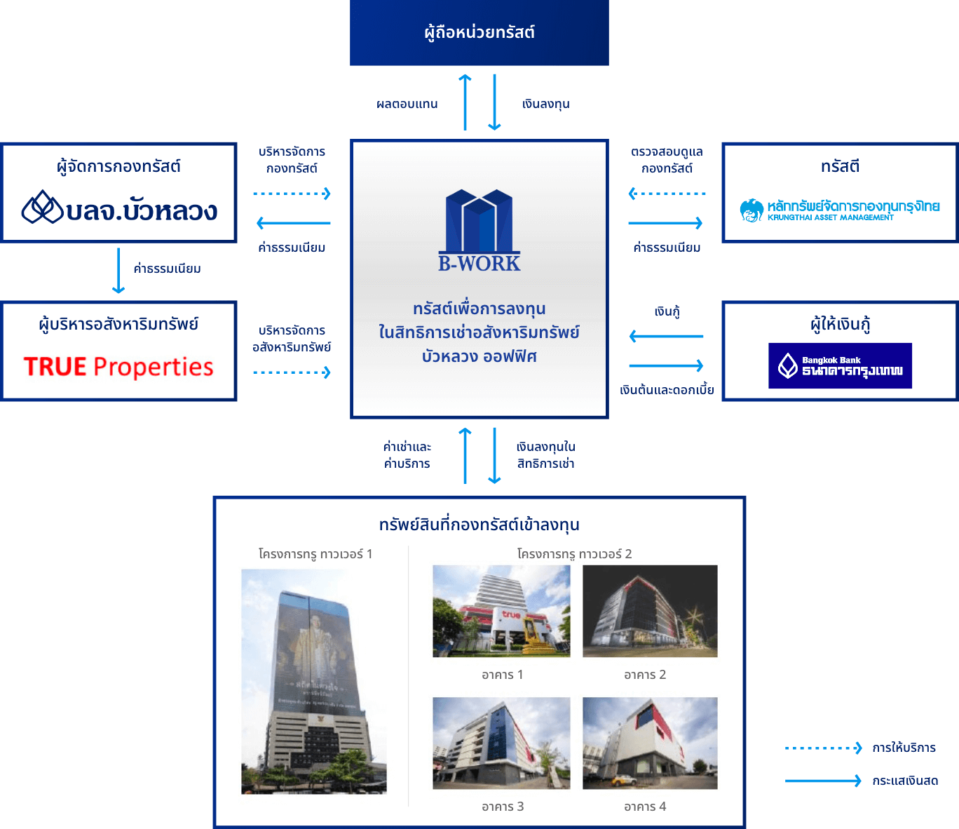 | ชื่อกองทรัสต์/ตัวย่อในการซื้อขาย | ทรัสต์เพื่อการลงทุนในสิทธิการเช่าอสังหาริมทรัพย์บัวหลวง ออฟฟิศ (B-WORK) |